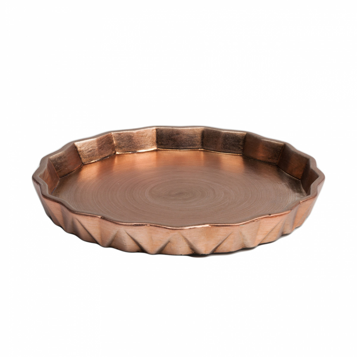 Это декоративное блюдо Sanctuary предназначено для хранения фруктов и конфет. Оно сделано из керамики, окрашенной в бронзовый цвет, что, в сочетании с многоугольной круглой формой, придает ему свою неповторимость. Наполненное яркими и сочными фруктами, декоративное блюдо Sanctuary создаст яркий акцент на кухне или в гостиной, поднимая настроение и делая помещение еще уютнее.