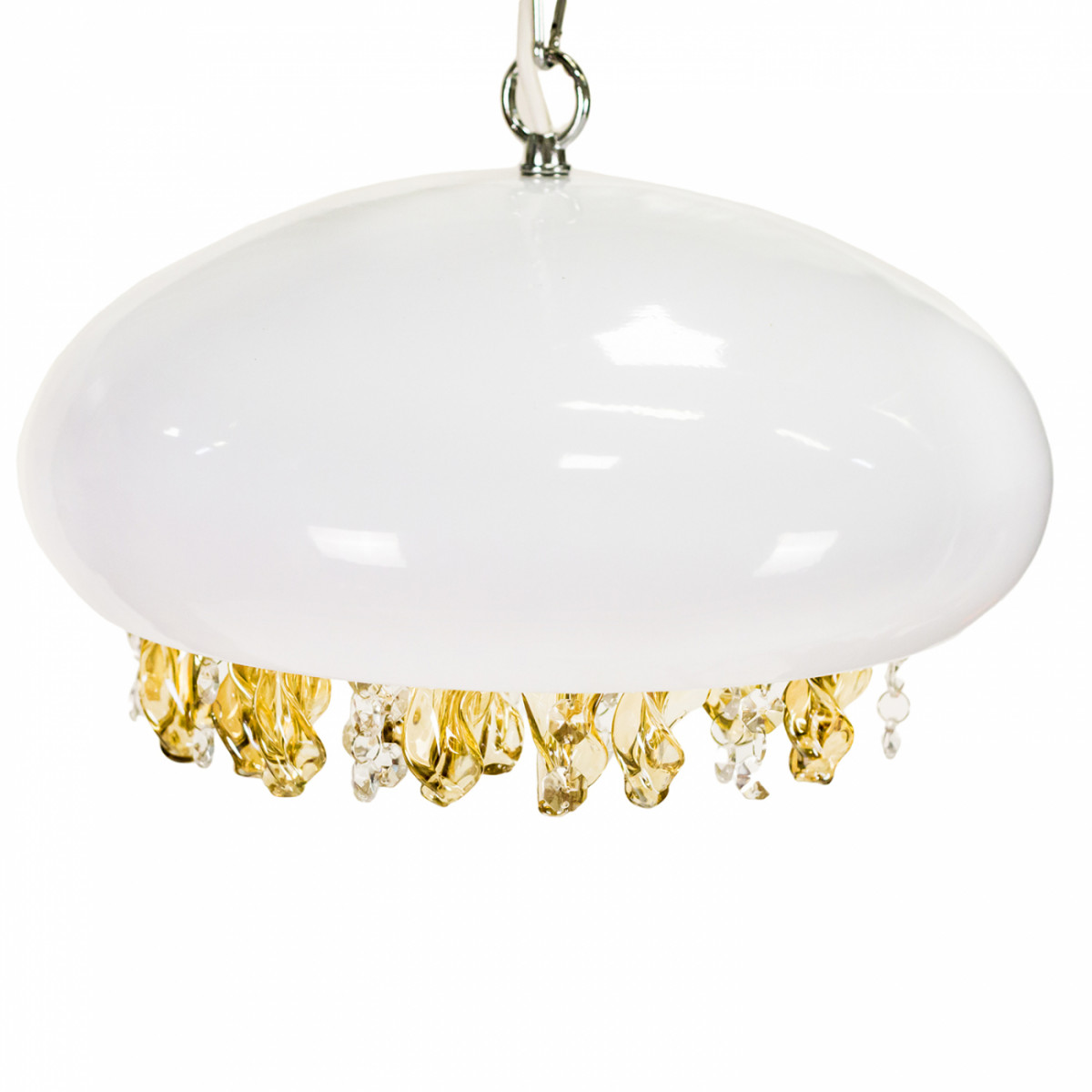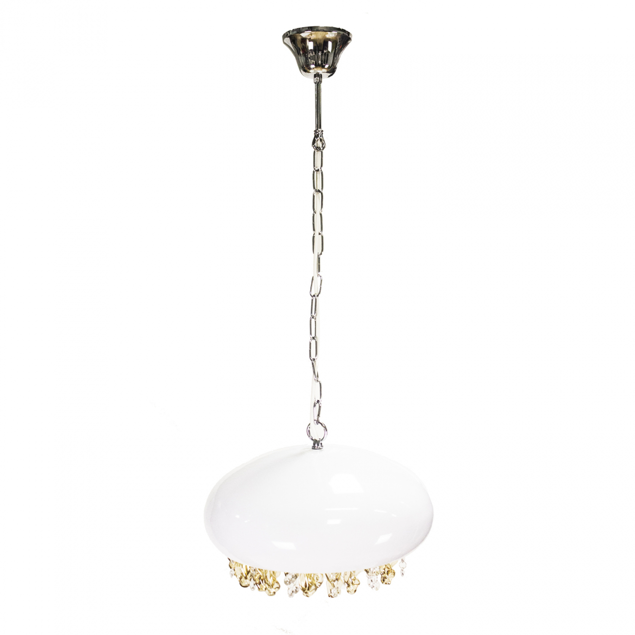 Абажур железо, окрашенное в белый цвет, основание хромированное железо, хрусталь, предназначена для использования со светодиодными лампами, лампы не включены в комплект